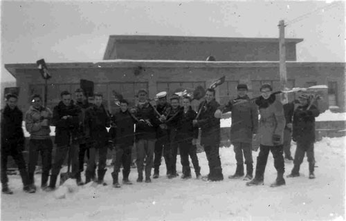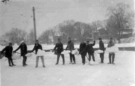 ![]() Snow Shovellers: Phil?, Hubert?, ?, Skip, Ed?, Rick, Barry, Eric, ?, ?,?,?,?,Ron N. |